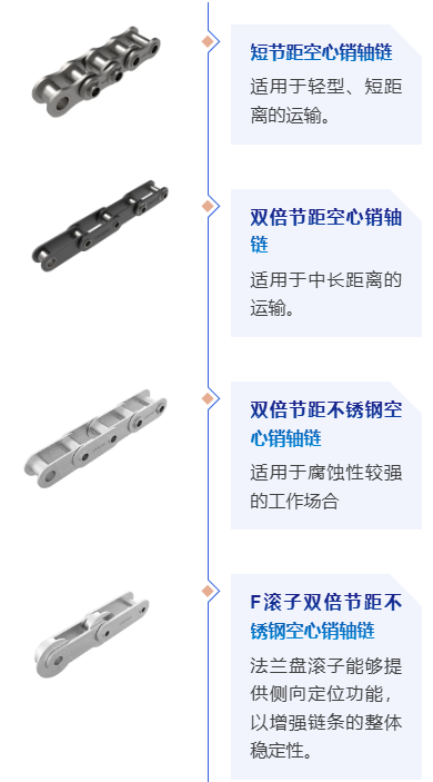 我司生產(chǎn)的空心銷軸鏈有多種規(guī)格可供選擇,能夠滿足不同的輸送距離和速度要求,適用于各種不同的工業(yè)應(yīng)用場景,可根據(jù)具體的設(shè)備布局和輸送需求進行靈活搭配 。