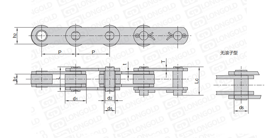 上圖為無滾子Z系列標(biāo)準(zhǔn)輸送鏈的結(jié)構(gòu)圖。