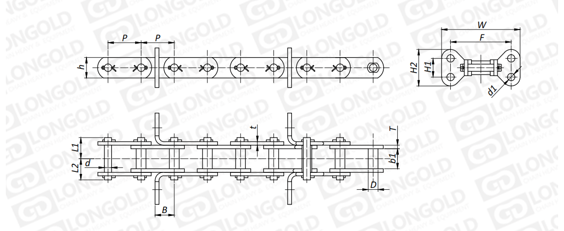 附件是為了將夾具安裝在鏈條上的零部件??筛鶕?jù)客戶要求設(shè)定安裝間隔。