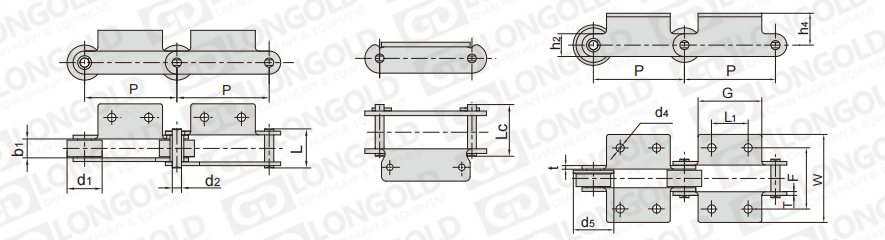 鏈條節(jié)距為非標(biāo)規(guī)格,需要安裝特定的附件,以用于物料的輸送。
