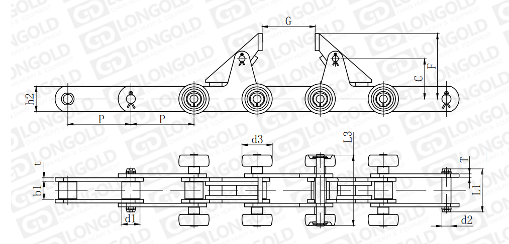 附件是為了將夾具安裝在鏈條上的零部件。可根據(jù)客戶要求設(shè)定安裝間隔。