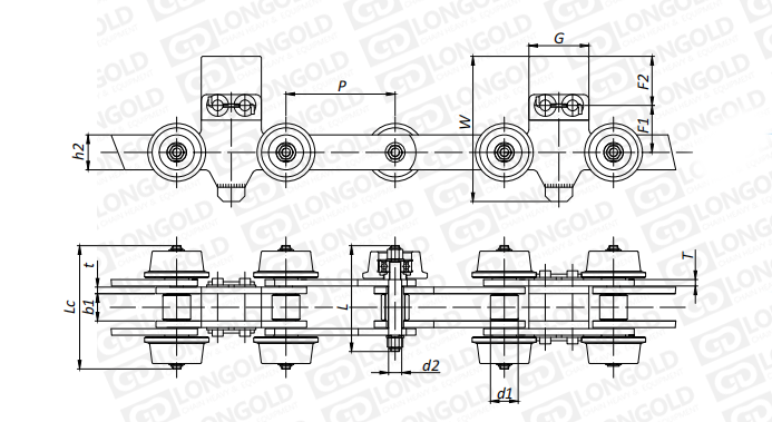 附件是為了將夾具安裝在鏈條上的零部件。可根據(jù)客戶要求設(shè)定安裝間隔。