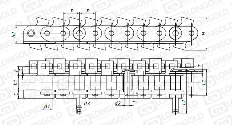 此類型鏈條是在標準短節(jié)距精密滾子鏈作為基鏈的基礎(chǔ)上加裝特殊附件的鏈條。