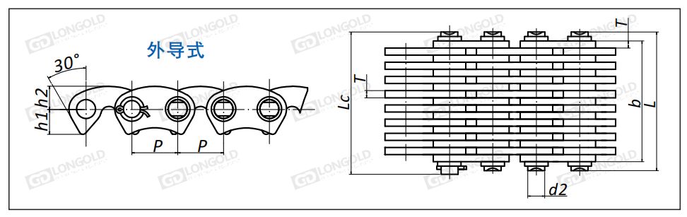 齒形鏈的鏈輪是特制的,如有需要,請咨詢隆德技術(shù)人員。