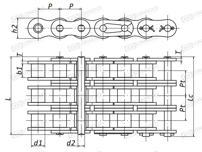 多列鏈條由于尺寸不同,所以不能使用標準滾子鏈輪。(如有特殊需要,請聯(lián)系隆德鏈條的技術人員)