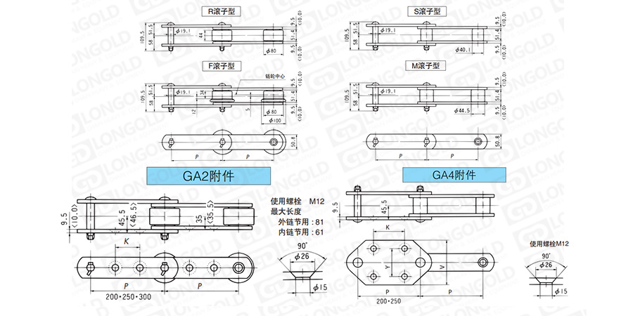 (2)滾子形式:R=大滾子? S=小滾子? F=F滾子 M=M滾子
