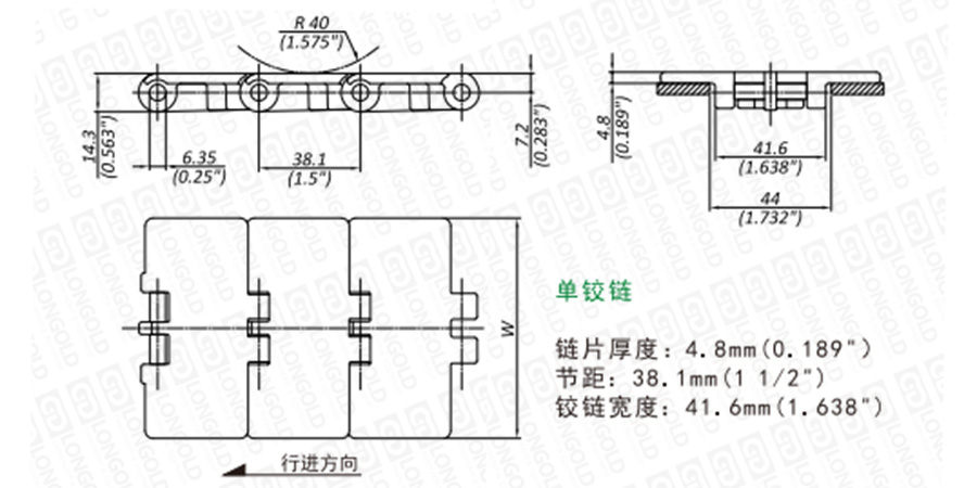 上圖為LD831系列直行鏈的結(jié)構(gòu)圖,圖紙已標(biāo)明本體尺寸。