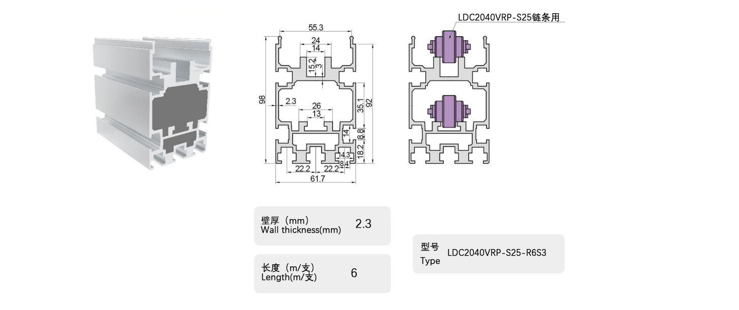 倍速鏈條用鋁制框架,用于滾子部采用工程塑料的倍速鏈條,包括帶蓋罩的倍速鏈條。在鋁制框架的輸送側(cè)小直徑滾子部安裝有鋼軌,可用于所有倍速鏈條。