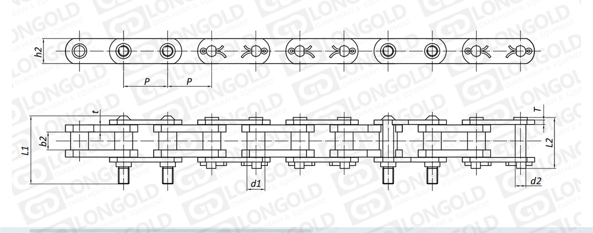 帶#標(biāo)記的鏈條連接鏈節(jié)形式是T型?鎖銷形式。