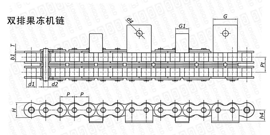 鏈條為雙排,主要作為果凍生產(chǎn)裝置的驅(qū)動(dòng)鏈條來(lái)使用。