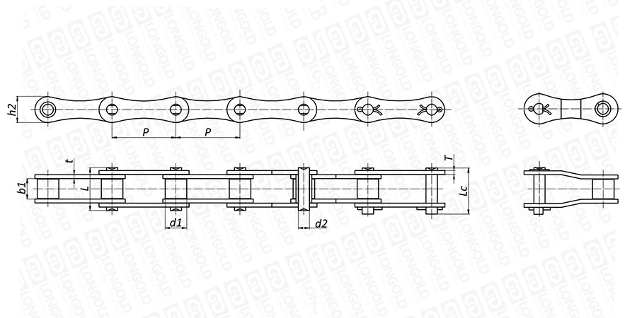 鏈條節(jié)距為標(biāo)準(zhǔn)傳動用滾子鏈的2倍,鏈板為8字板,這樣可以提高鏈條的整體強度和承載能力。