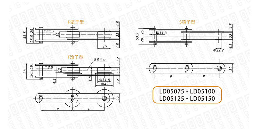 請(qǐng)把使用鏈條的長(zhǎng)度換算成鏈條的鏈節(jié)數(shù)后訂購?;蛘?/span>咨詢隆德技術(shù)人員。