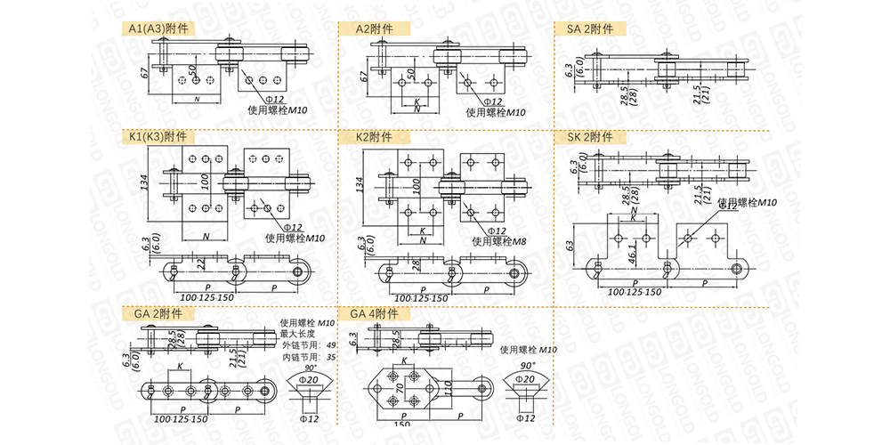 附件是為了將夾具安裝在鏈條上的零部件??筛鶕?jù)客戶要求設定安裝間隔。