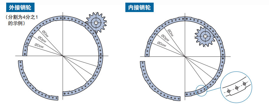 銷輪分為外接銷輪和內(nèi)接銷輪兩種,如下圖所示: