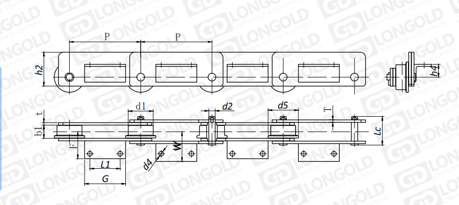 附件可配裝在每一個(gè)鏈節(jié)以上的鏈節(jié)間隔,如每偶數(shù)鏈節(jié)安裝,為了容易進(jìn)行保養(yǎng),安裝在外鏈節(jié)。