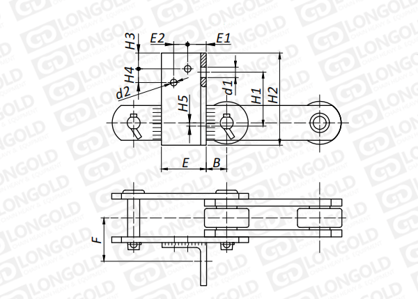 附件可配裝在每一個鏈節(jié)以上的鏈節(jié)間隔,如每偶數(shù)鏈節(jié)安裝,為了容易進行保養(yǎng),安裝在外鏈節(jié)。