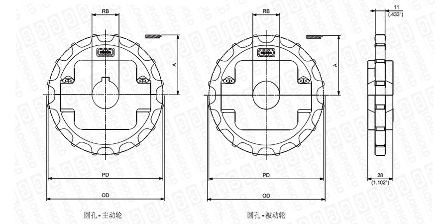 1.圓孔鏈輪表示直徑,方孔鏈輪表示邊長。