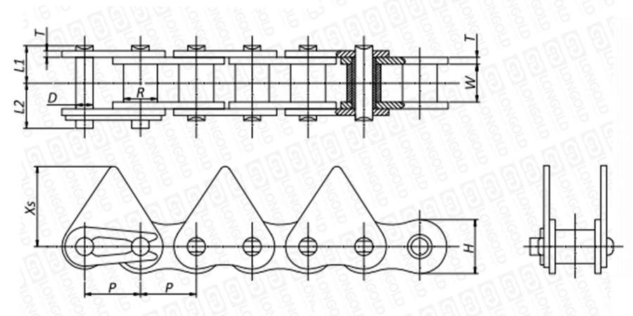 上圖為不銹鋼尖齒鏈I的結(jié)構(gòu)圖。