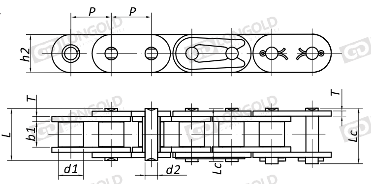 1.連接鏈節(jié)的銷(xiāo)軸形式,LDC35-LDC60為卡簧型 ,LDC80以上為開(kāi)口銷(xiāo)型