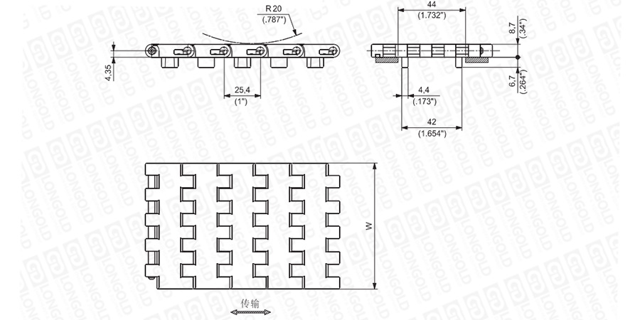封閉與開(kāi)孔式網(wǎng)帶可在輸送線上與磁性或勾腳型轉(zhuǎn)彎鏈板783或782系列并排使用,保證產(chǎn)品在直行與轉(zhuǎn)彎輸送間的順暢過(guò)渡。