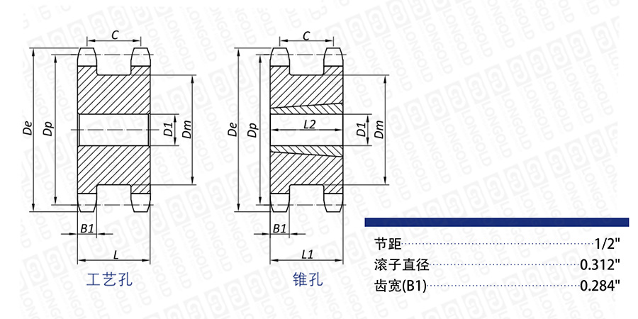 注:帶錐孔雙驅(qū)動鏈輪的參考重量僅為鏈輪重量,不包含錐套重量。
