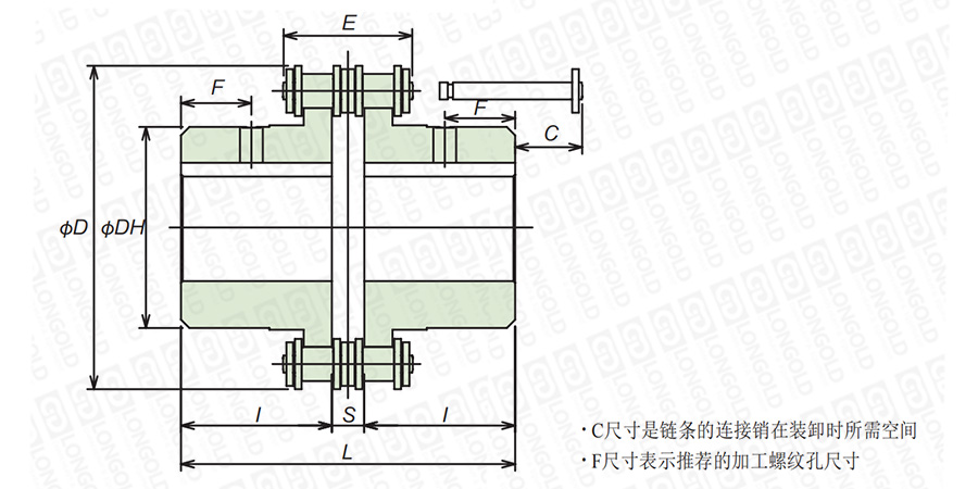 上圖為滾子鏈聯(lián)軸器不銹鋼系列的結(jié)構(gòu)圖。