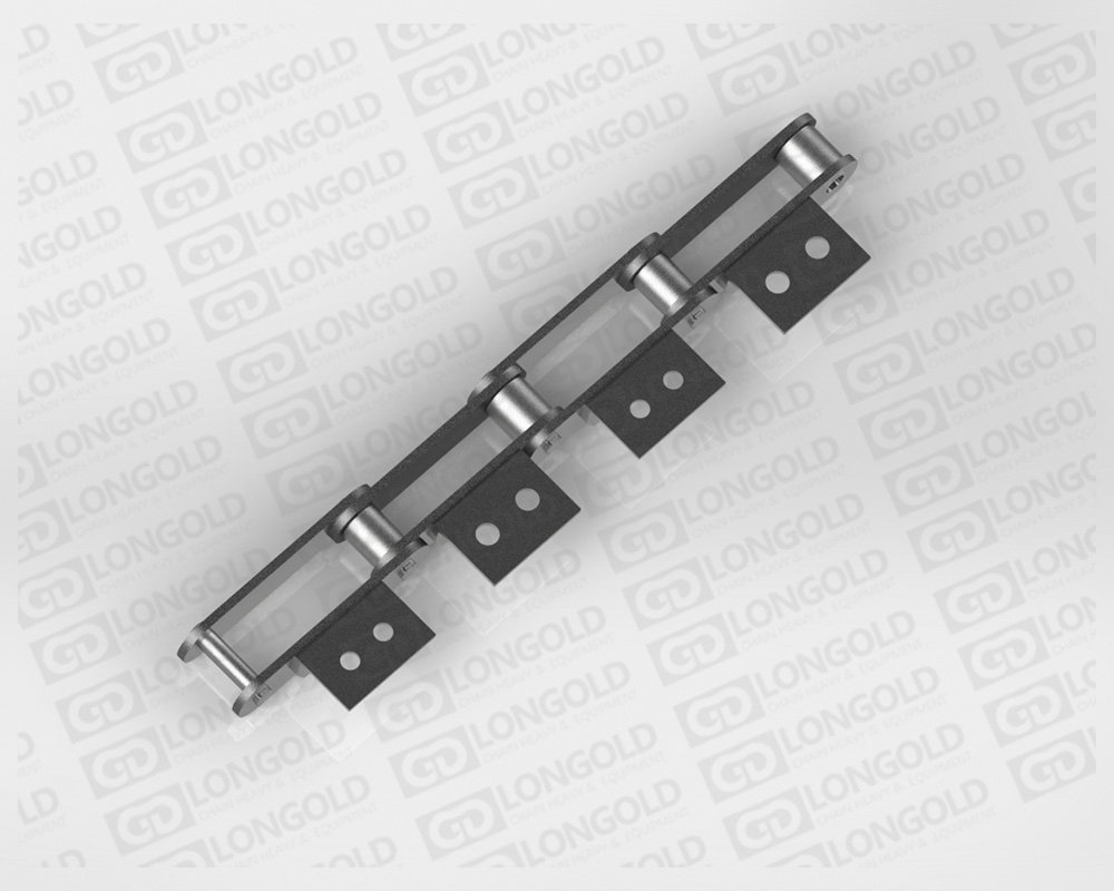在大型輸送鏈條LDC36250~LDC440600的單側(cè)鏈板焊接附件的折彎板附件的鏈條。附件是為了將夾具安裝在鏈條上的零部件,可根據(jù)客戶要求設(shè)定安裝間隔。附件上帶有2個(gè)或3個(gè)孔,附件表示為:YA2、YA3。