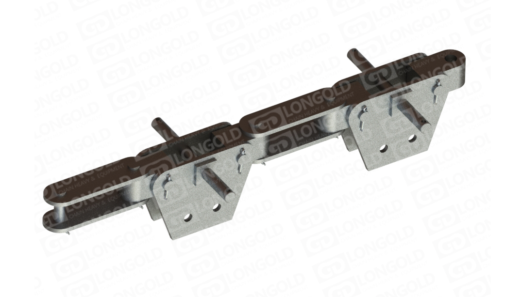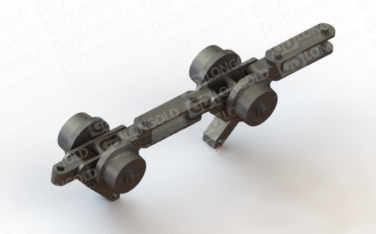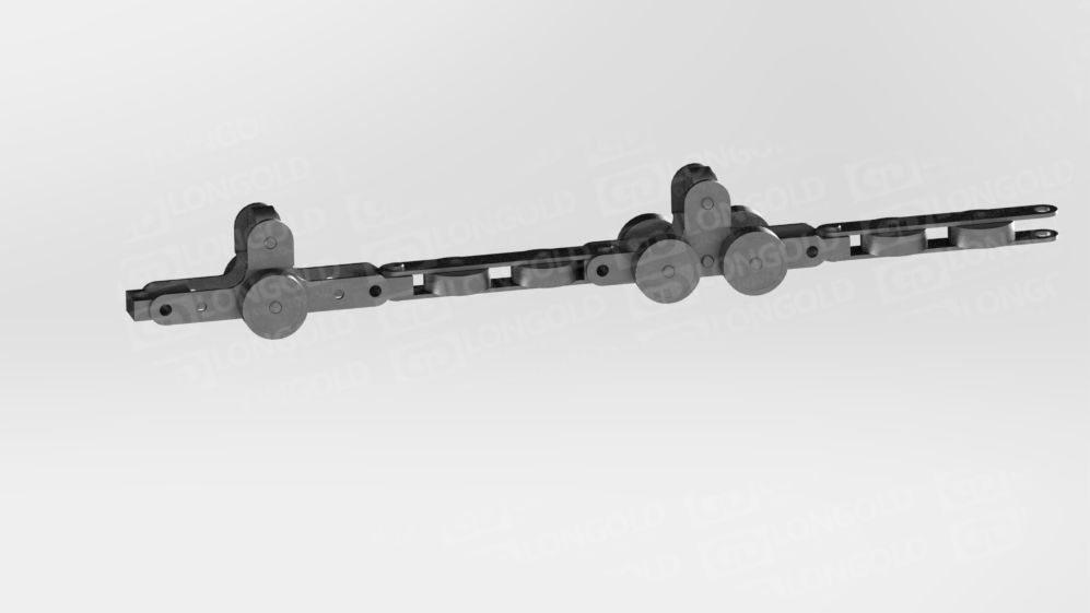 雙鉸接輸送鏈條設計用于能夠在空間范圍內沿彎曲封閉軌道平穩(wěn)運行的輸送系統(tǒng),常見于輕型封閉軌懸掛輸送機。它的結構允許在多個方向上靈活移動,適用于復雜的輸送路線。
