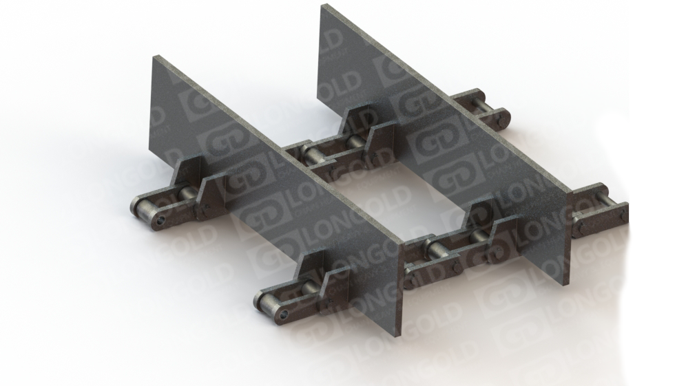 雙排鋪路機(jī)鏈條設(shè)計(jì)用于雙排鋪路機(jī),它們?cè)趦涉湕l之間裝配刮板,以提高物料的輸送效率和鏈條的耐用性。