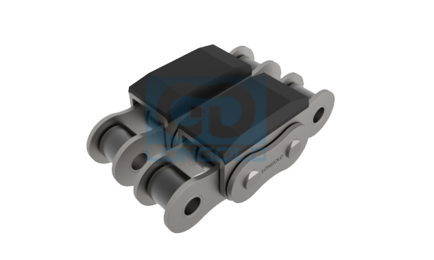 此類鏈條是在基于A、B系列鏈條的外鏈節(jié)上加U形附板,在附板上粘上橡膠〈(如天然橡膠NR、硅樹脂橡膠SI等)可增加磨損能力,降低噪音,增加防震能力。