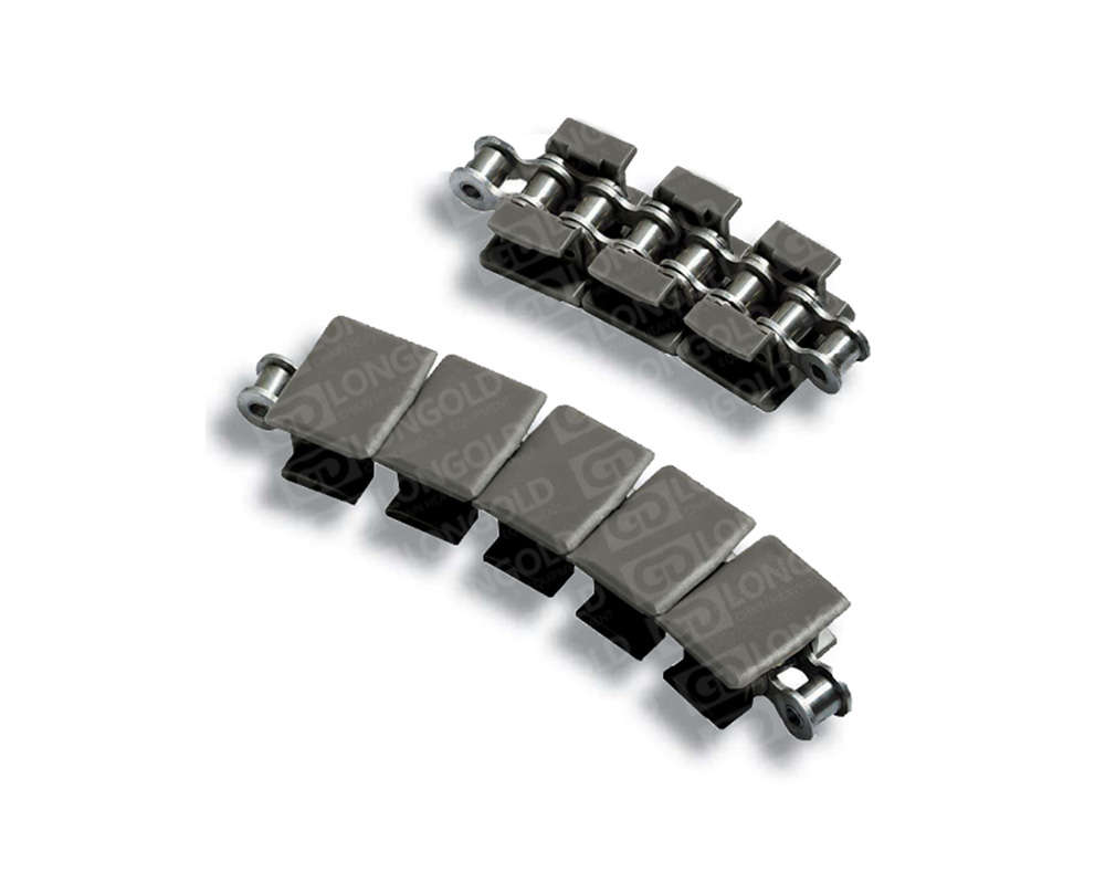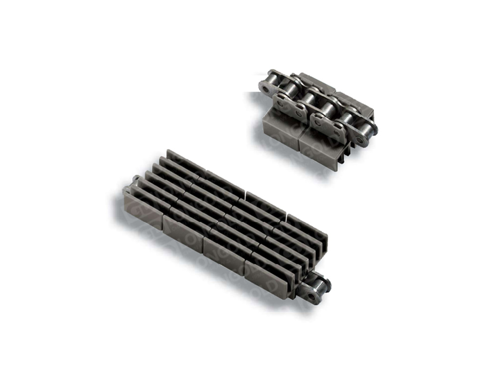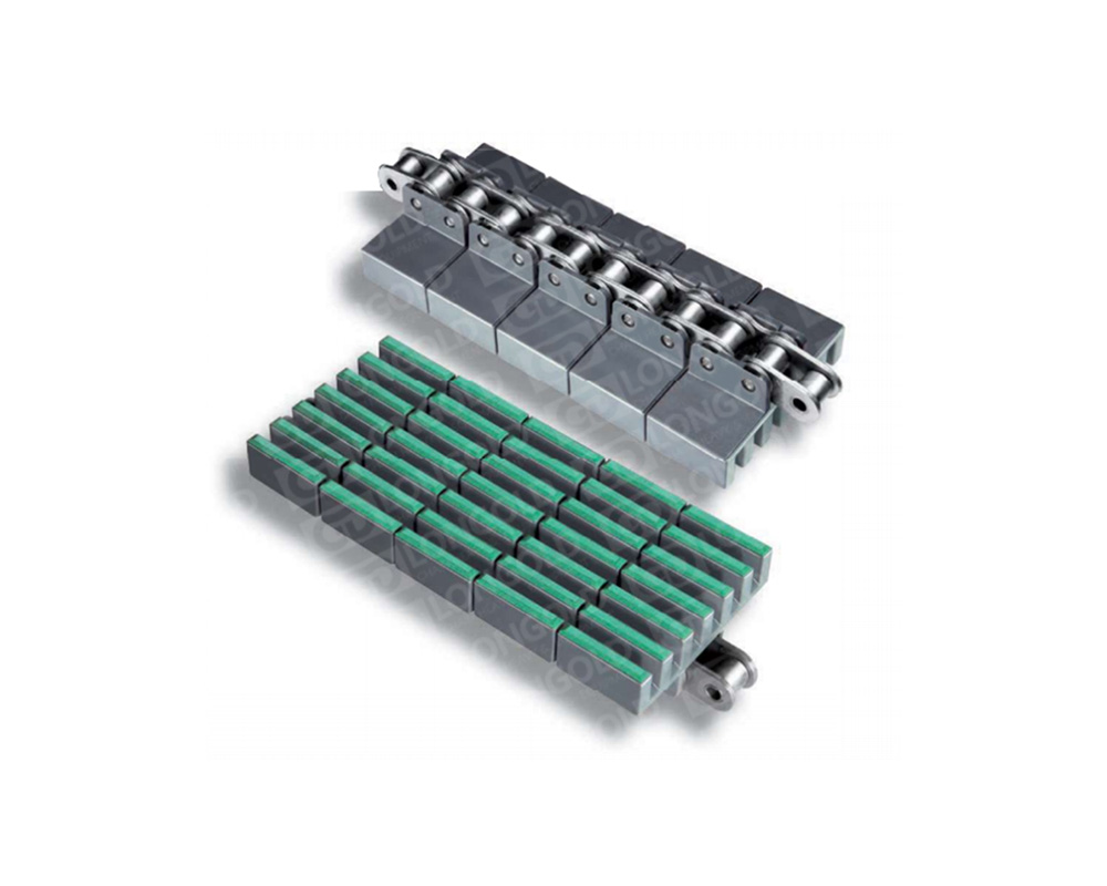 雙體鏈便于更換塑料節(jié),高機(jī)械強(qiáng)度,同單體鏈相比,即便是在負(fù)載條件下頻繁啟動同樣可以長距離傳送并減小拉伸。HFRR845系列為頂板帶橡膠墊的雙體直行塑料鏈條,鏈條節(jié)距為12.7毫米。 鏈條為凸肋型,適合與過渡梳子板配套使用