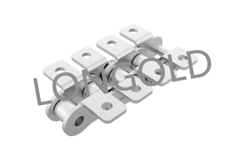 通過各種材料的組合,適合于水中、酸性及堿性等腐蝕性環(huán)境中或低溫、高溫的特殊環(huán)境里使用,且鏈條的單側鏈板延伸作為鏈條附板,且附板上帶有一個孔的A系列小型輸送鏈。材質使用相當于SUS304規(guī)格的不銹鋼材料。