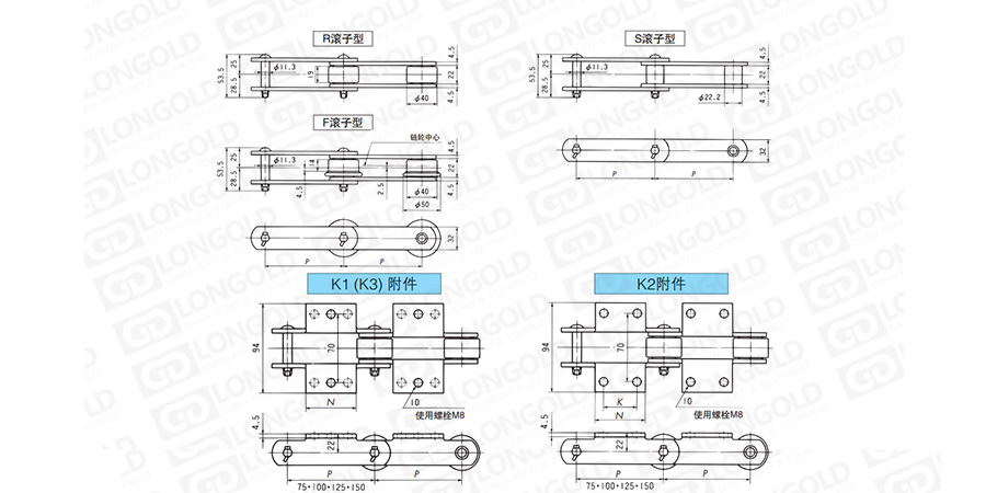 帶K附件LDC05075~LDC05150規(guī)格輸送鏈