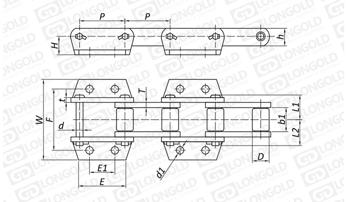 附件可配裝在每一個鏈節(jié)以上的鏈節(jié)間隔,如每偶數(shù)鏈節(jié)安裝,為了容易進行保養(yǎng),安裝在外鏈節(jié)。