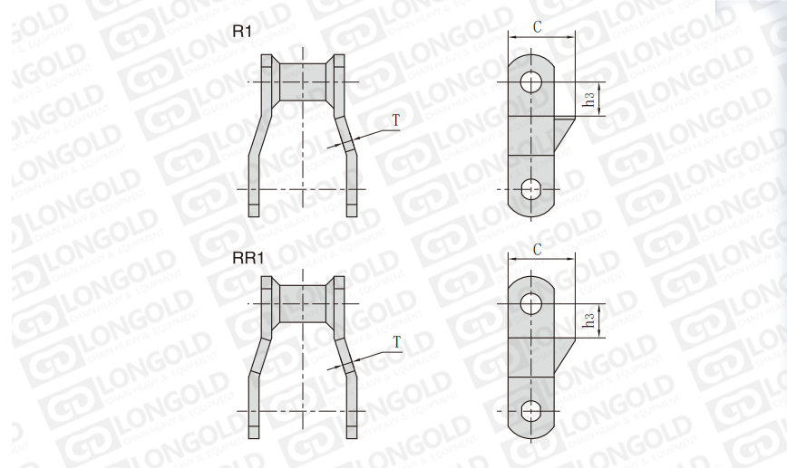 焊接結(jié)構(gòu)彎板鏈條是一種特殊結(jié)構(gòu)的鏈條,其鏈板采用彎板形式,并且通過焊接工藝將各個部件連接在一起。R1&RR1附件是特殊的附件形式,如有需要,請咨詢隆德技術(shù)人員。