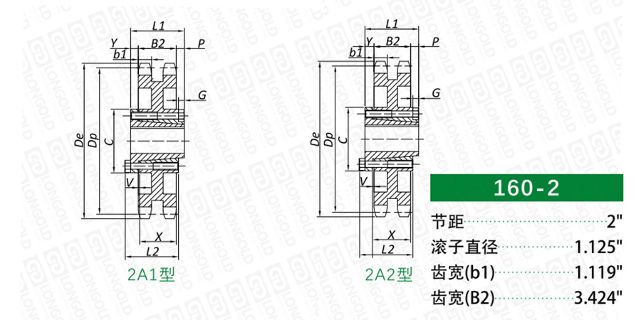 上圖為160-2 QD孔鏈輪的結構圖。