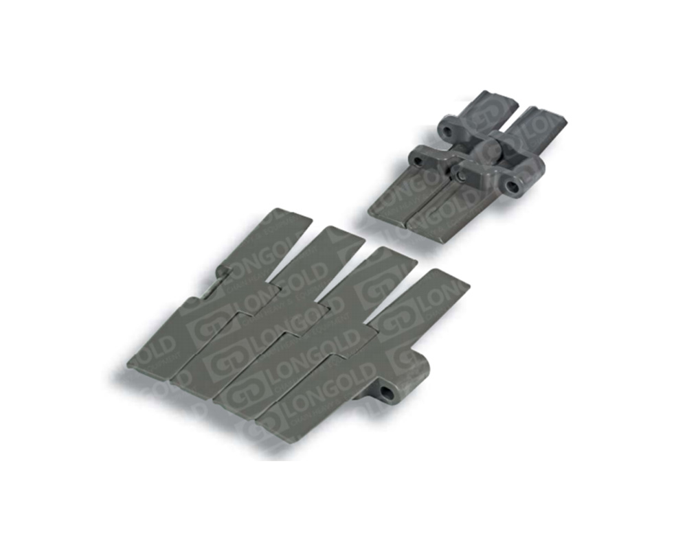鏈板通常采用工程塑料材質(zhì),這些材料具有較高的強度、耐磨性和耐腐蝕性。882M系列鏈條為磁性重載轉(zhuǎn)彎鏈條,加強的鏈片厚度為4.8毫米,重載鉸鏈寬度為57毫米。高水平注塑工藝確保高標(biāo)準(zhǔn)的平面度