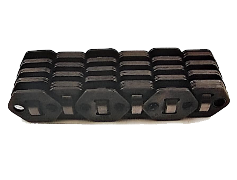 帶螺紋延長(zhǎng)銷鏈條,延長(zhǎng)銷(高強(qiáng)鋼淬火)進(jìn)行螺紋處理,延長(zhǎng)銷有著高強(qiáng)度性能,能夠用螺栓固定夾具。