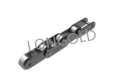 與短節(jié)距A系列滾?鏈條相?,鏈條節(jié)距增加1倍(稱為雙倍節(jié)距),鏈板形狀為直板形,依照JIS,ISO和ASME標準。滾子形式為R滾子